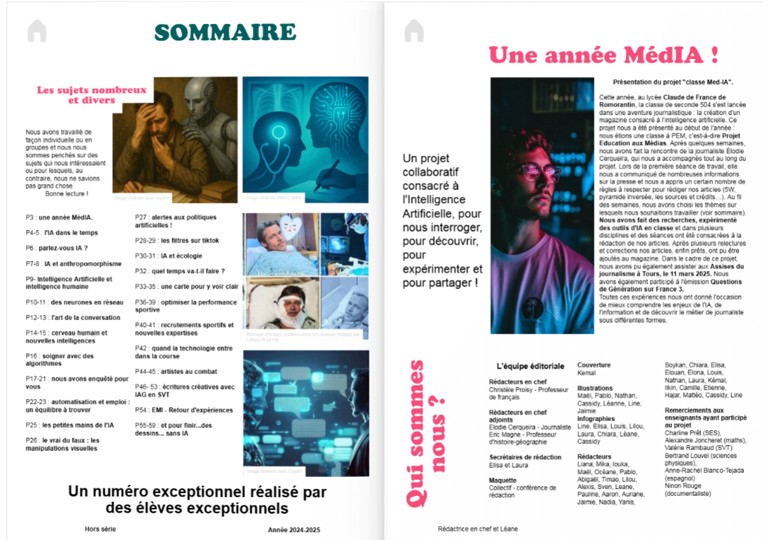 Un magazine numérique consacré à l’IA qui comporte les articles rédigés par les élèves mais également des créations produites avec l’aide d’une IAG.