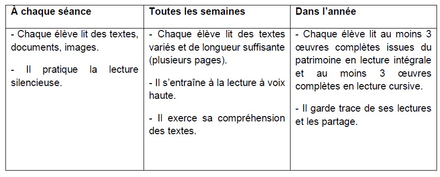 « À l’issue de ce cycle, chaque élève doit maîtriser une lecture orale et silencieuse, fluide et suffisamment rapide, pour poursuivre et développer le travail de compréhension et d’interprétation ».