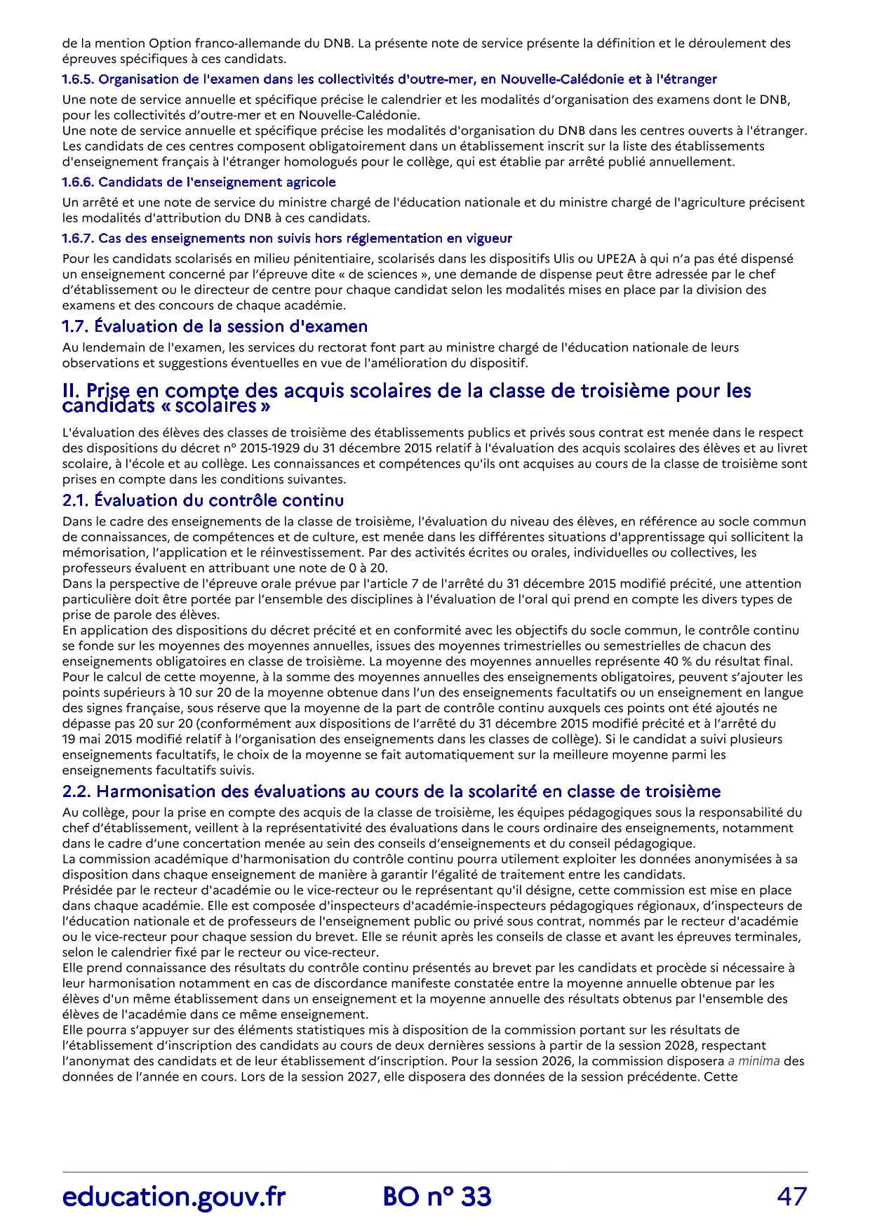 Ce mémento s’adresse en premier lieu aux professeurs, aux personnels de direction et aux inspecteurs. Dans le prolongement de la note de service relative aux modalités d’attribution du DNB à compter de la session 2026 et donnée ci-dessous, ce mémento explique le cadre de mise en œuvre du contrôle continu, réaffirme les principes communs et essentiels de l’évaluation au service des apprentissages, et formule des recommandations utiles aux équipes, sans toutefois se substituer à l’accompagnement des inspecteurs pédagogiques régionaux.