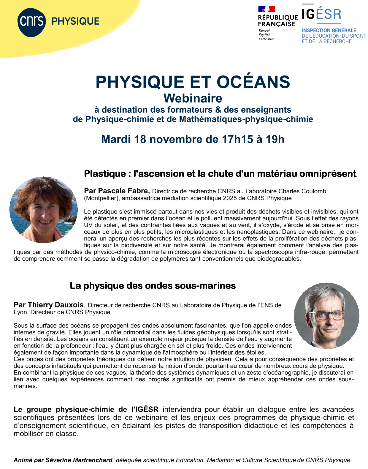 Le CNRS organise, en collaboration avec le groupe physique-chimie de l’IGÉSR, un webinaire scientifique très largement ouvert à l’ensemble des professeurs et formateurs de physique-chimie le mardi 18 novembre 2025 de 17h15 à 19h. Le thème de ce webinaire est :