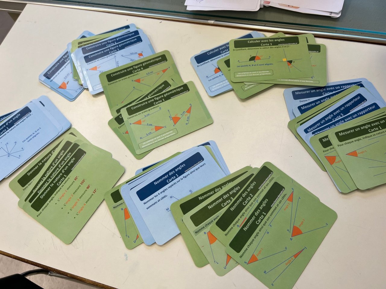 Depuis octobre 2025, vous trouverez sur Mon classeur de mathématiques 40 flashcards auto-correctives pour travailler les angles en classe de 6e (ou en révision en 5e). Les cartes sont proposées sous forme de fichiers pdf à imprimer.