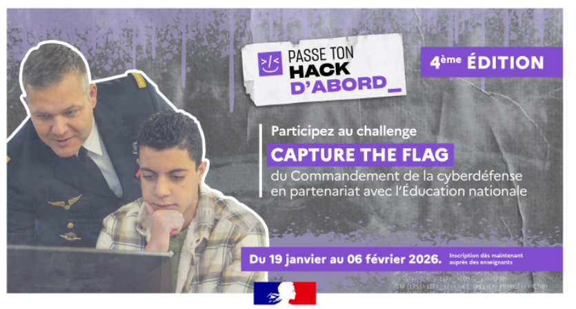 Du 19 janvier au 6 février 2026, ce challenge s’adresse aux lycéens de la seconde à la terminale ainsi que les étudiants de BTS et de classes préparatoires afin de les initier aux techniques employées par les cybercombattants.