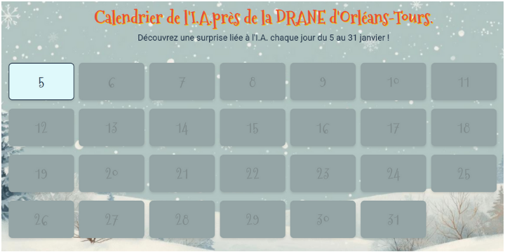 La DRANE d’Orléans-Tours vous propose un calendrier de l’IAprès pendant le mois de Janvier.