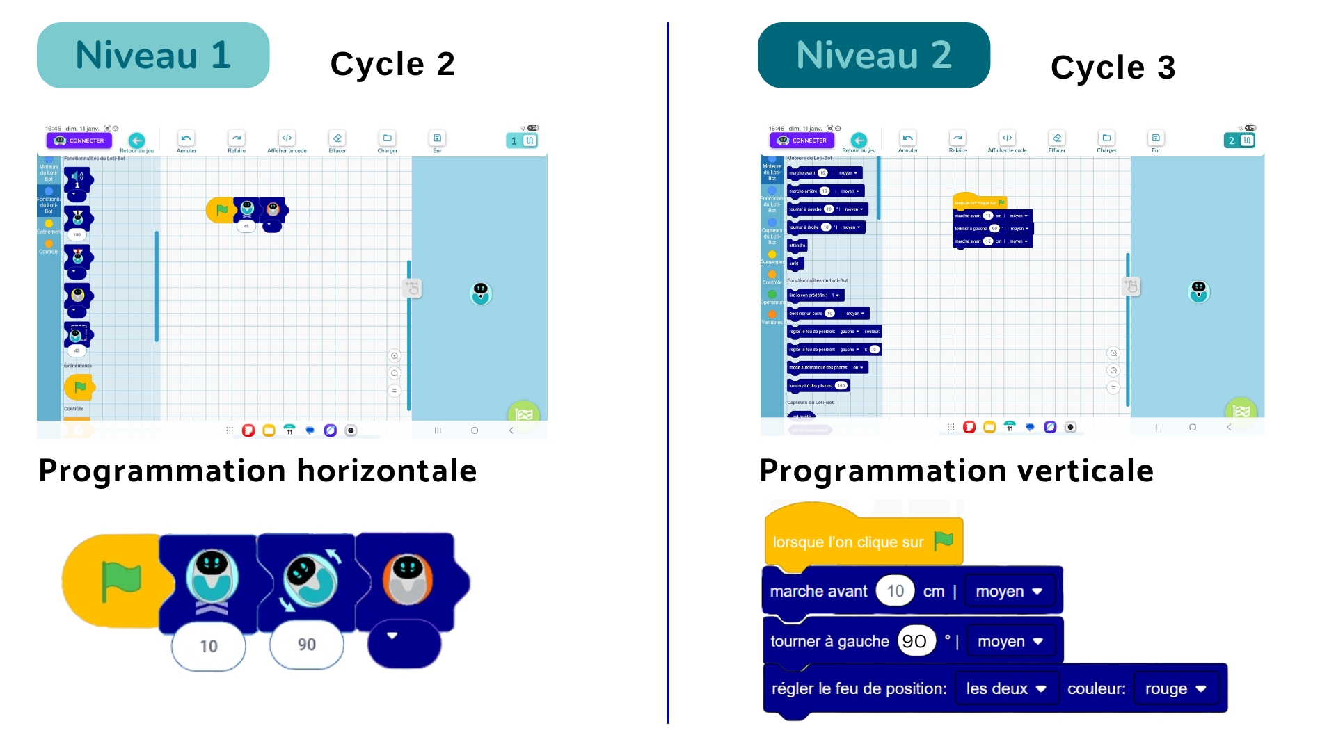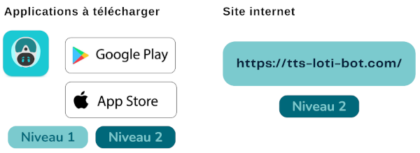 Le pilotage et la programmation du robot s’effectuent via l’application Loti-Bot, disponible en téléchargement pour les environnements mobiles (https://tts-loti-bot.com/)