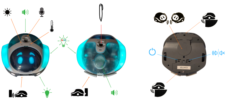 - Capteurs : Il est équipé de capteurs de proximité , de pare-chocs et d’un capteur de "falaise" pour éviter les chutes lors d’activités sur table.