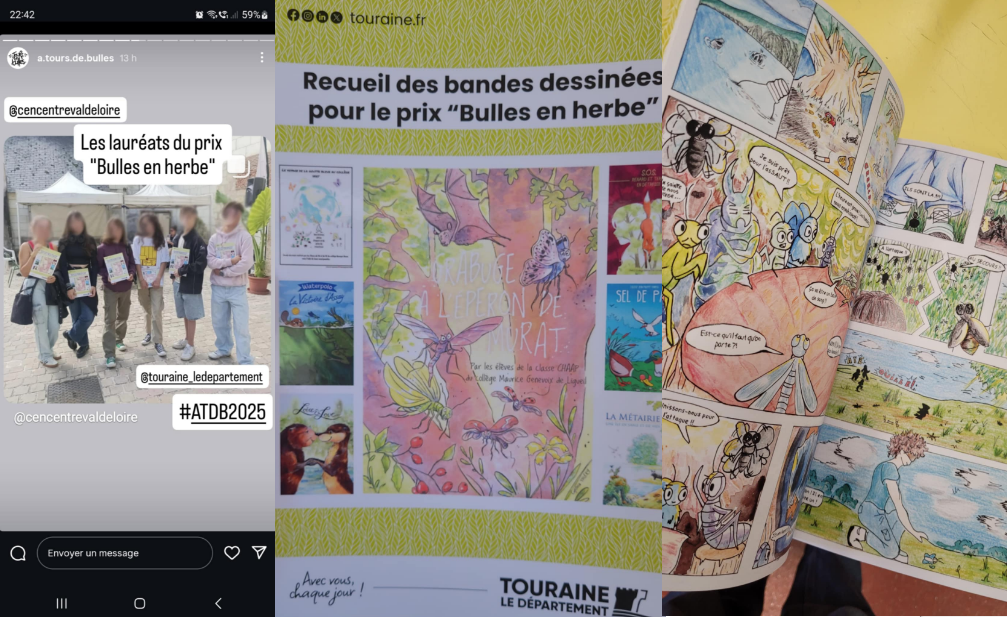 Les élèves de troisième CHAAP du collège Maurice Gennevoix de Ligueil ont remporté le concours des collégiens du Festival de bande-dessinée A Tours de Bulles dimanche 21 Septembre 2025.